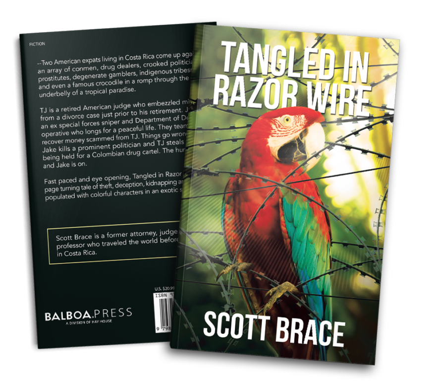 –Two American expats living in Costa Rica come up against an array of conmen, drug dealers, crooked politicians, prostitutes, degenerate gamblers, indigenous tribesmen and even a famous crocodile in a romp through the dark underbelly of a tropical paradise. TJ is a retired American judge who embezzled millions from a divorce case just prior to his retirement. Jake is an ex special forces sniper and Department of Defense operative who longs for a peaceful life. They team up to recover money scammed from TJ. Things go wrong when Jake kills a prominent politician and TJ steals money being held for a Colombian drug cartel. The hunt for TJ and Jake is on. Fast paced and eye opening, Tangled in Razor Wire is a page turning tale of theft, deception, kidnapping and murder populated with colorful characters in an exotic setting.